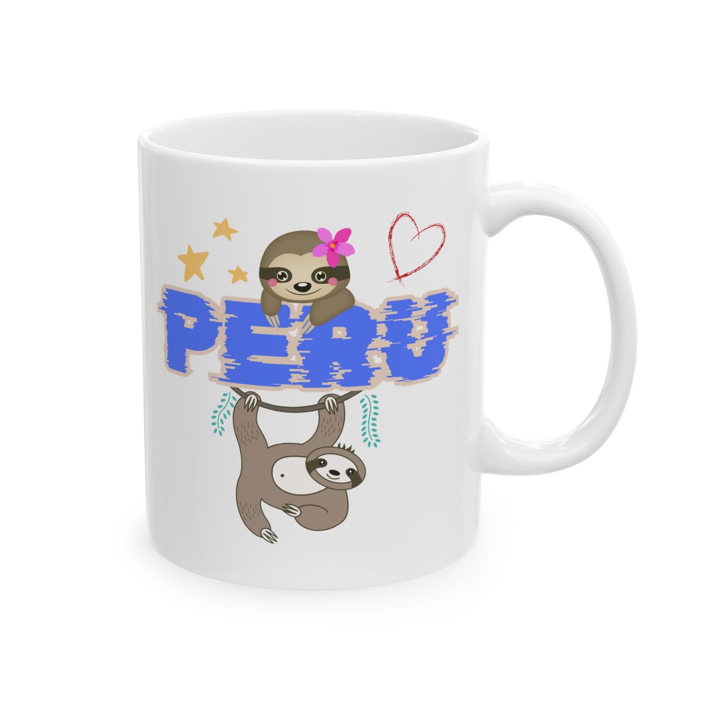 Best Peruvian Ceramic Coffee Mug, (11oz, 15oz) "Peruvian Jungle Perezozo"