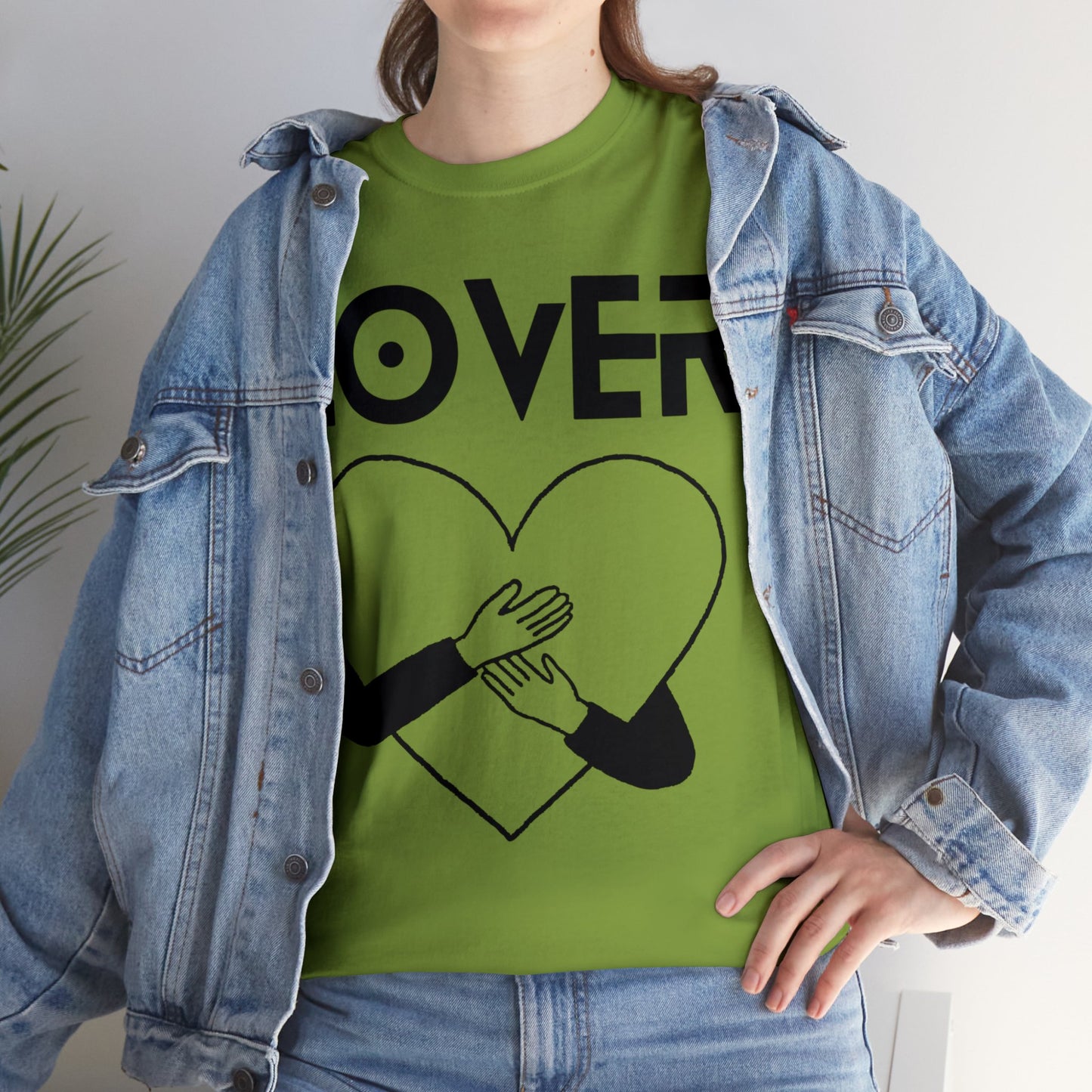 A generously sized heart takes center stage, symbolizing love in its purest form. What makes this design truly special is the inclusion of two gracefully entwined arms lovingly embracing the heart, creating a visual ode to connection and unity, the word "Lover" is elegantly scripted, adding an extra layer of sentiment and meaning to the design.