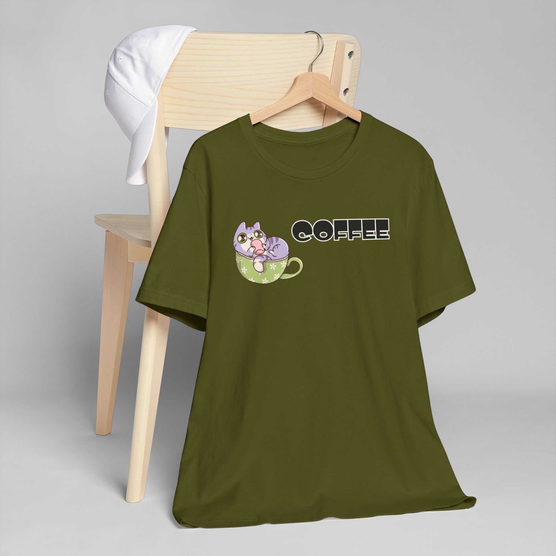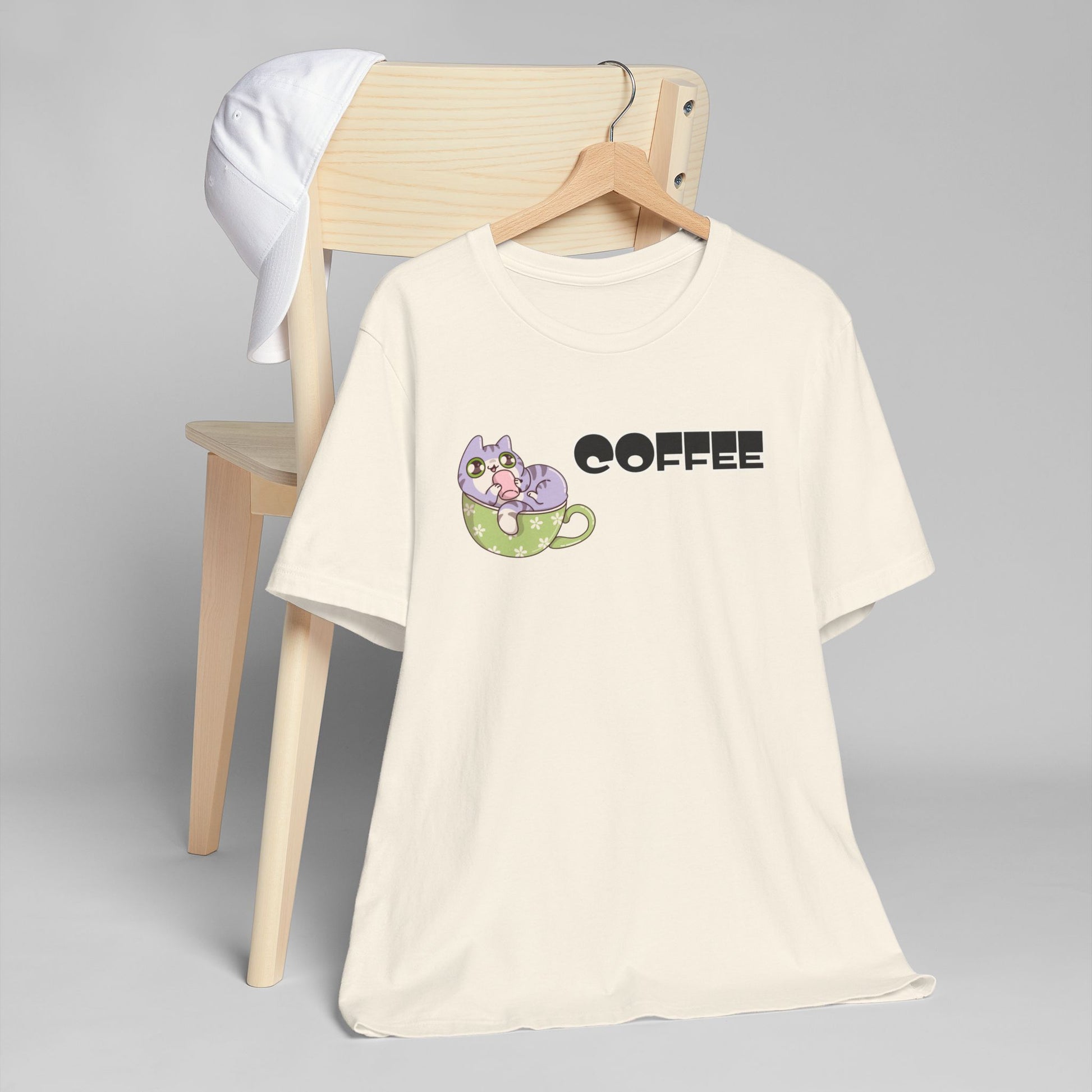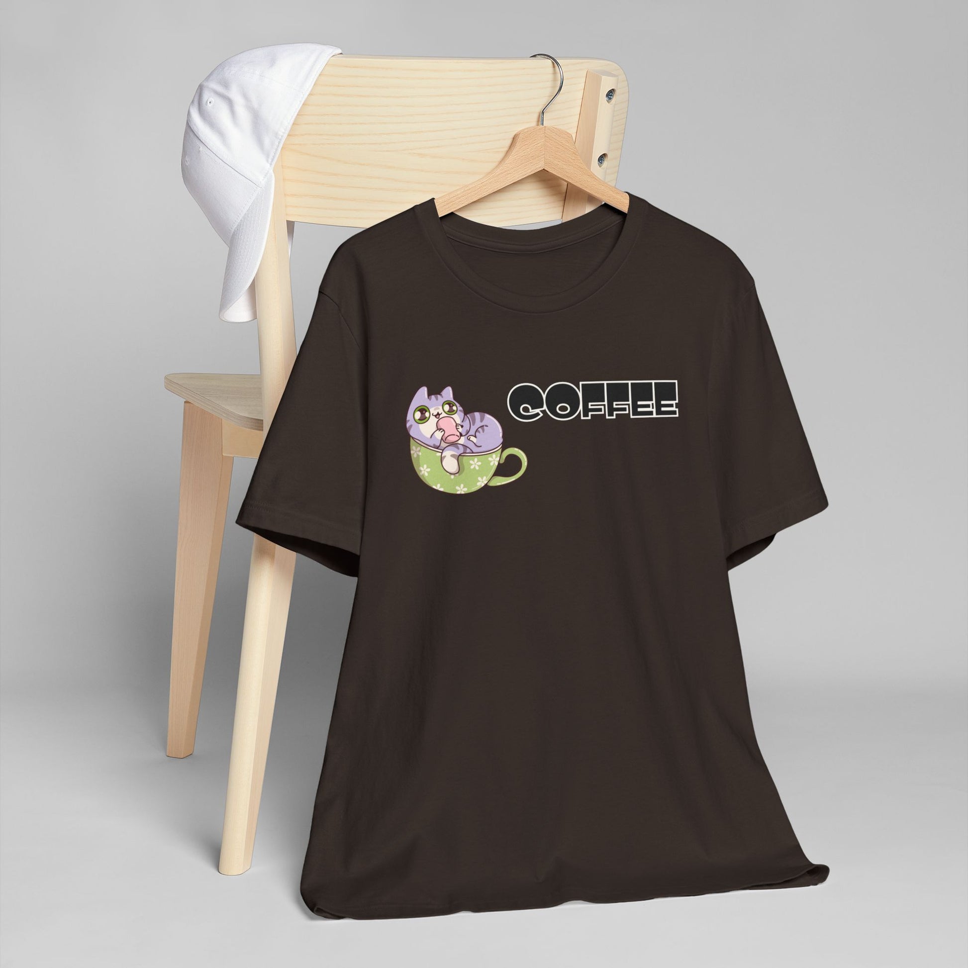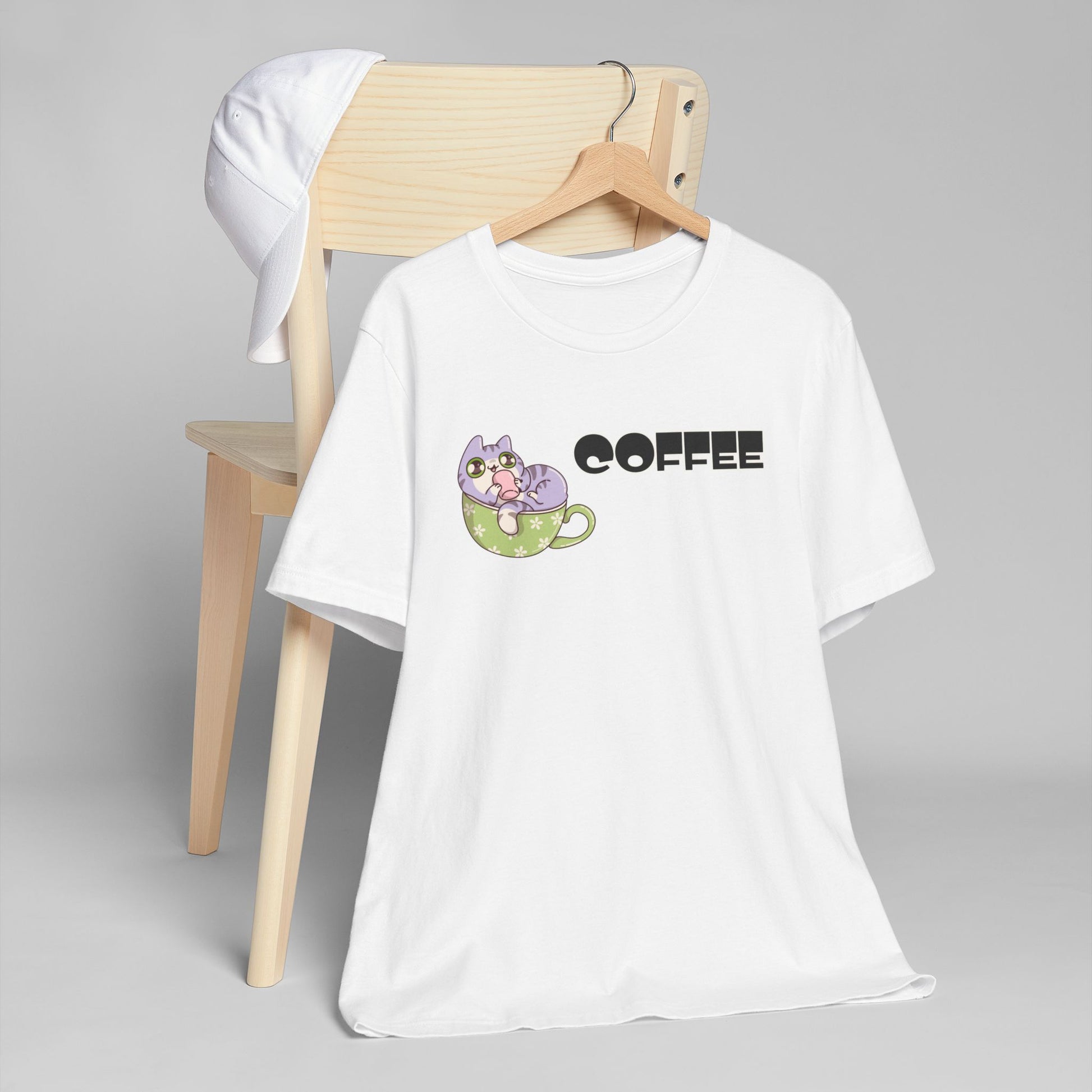 Coffee Cat Unisex Jersey T-Shirt – Playful Graphic Tee (USA Only)