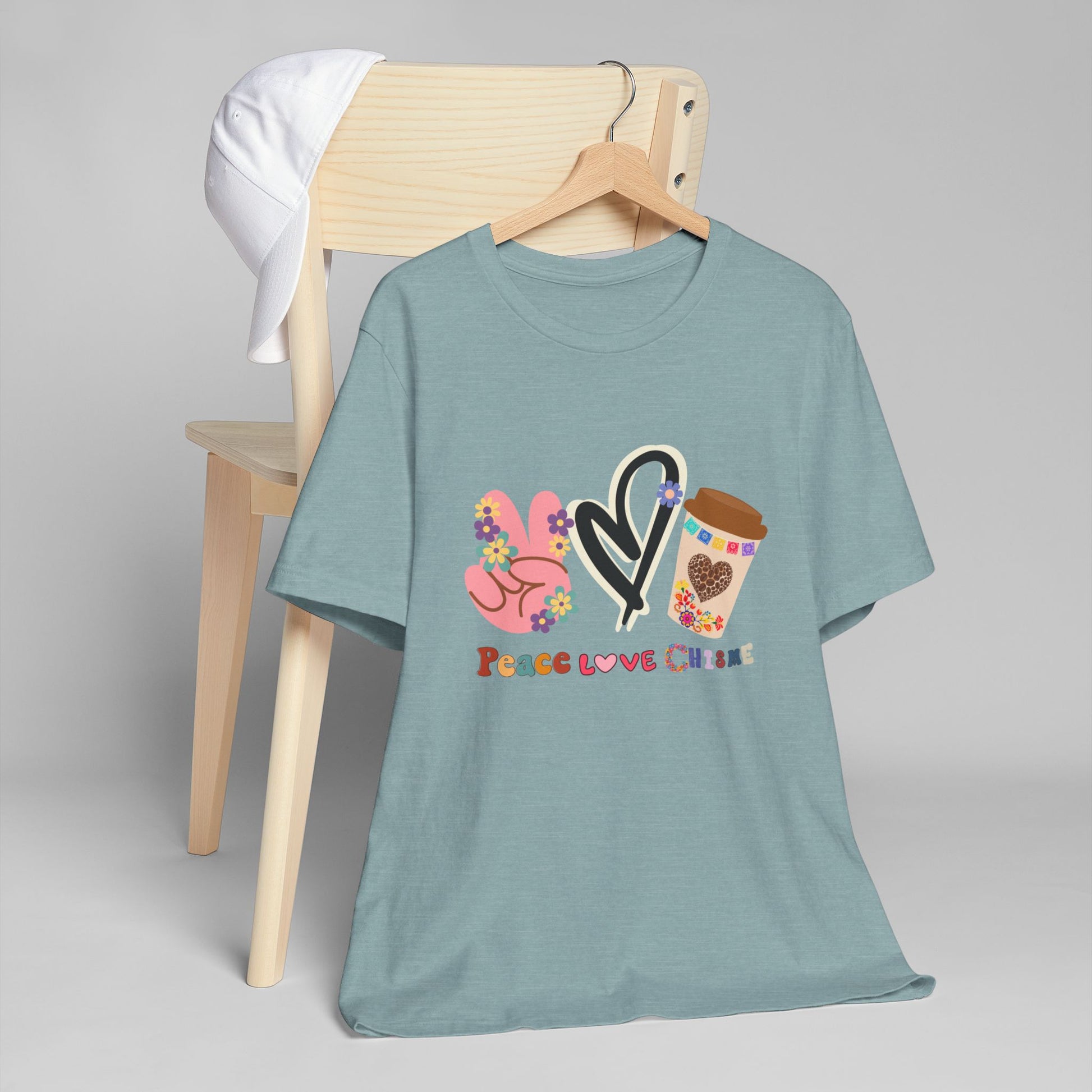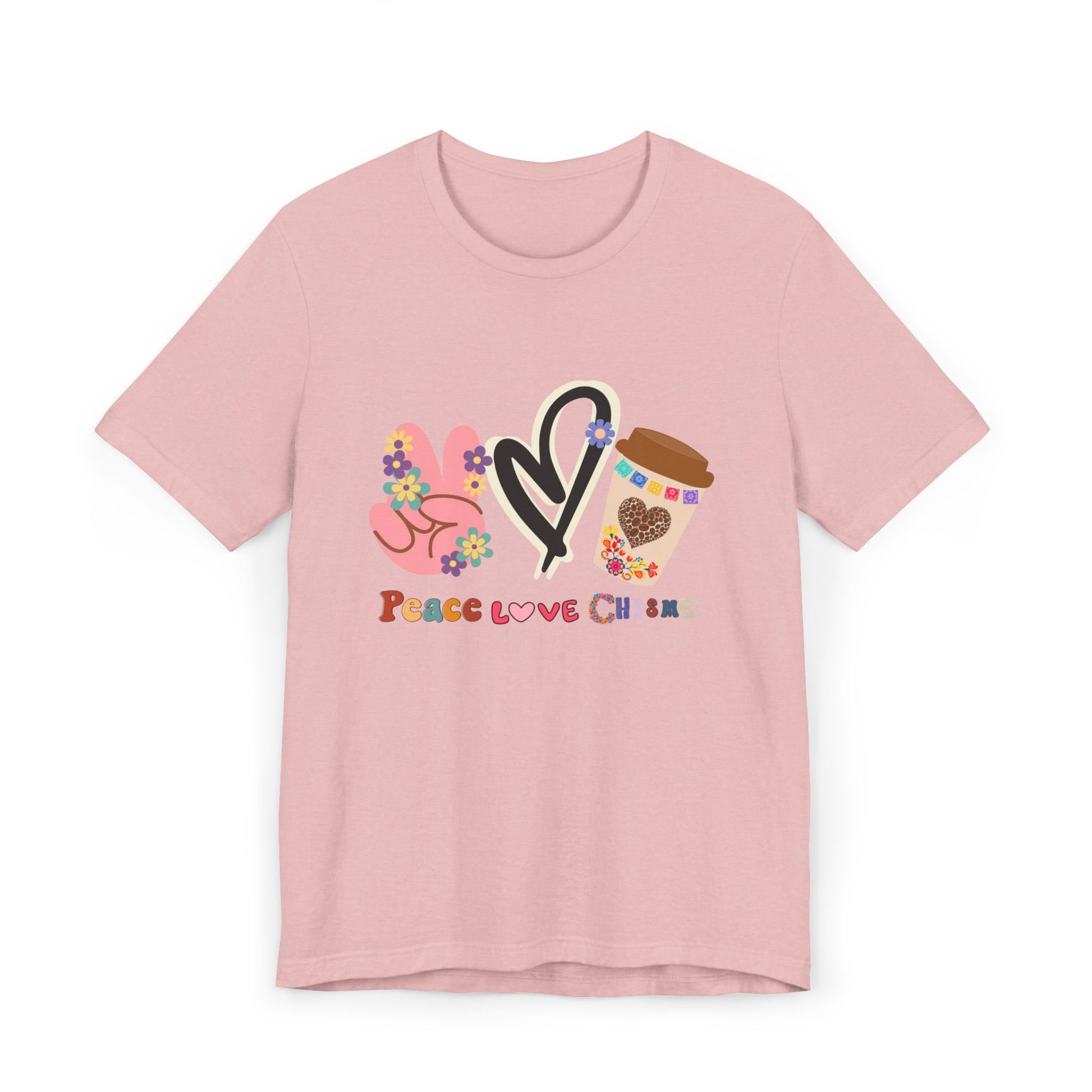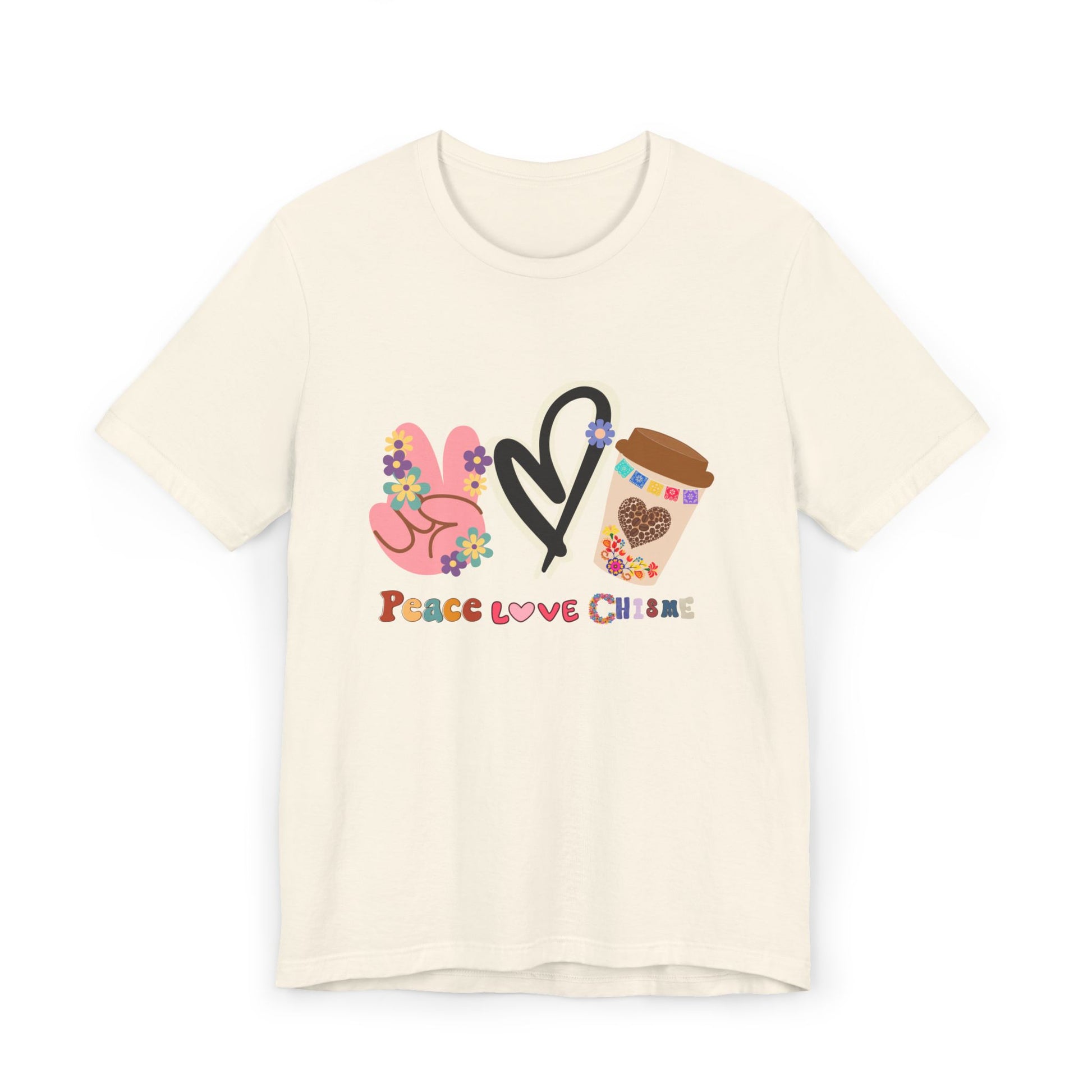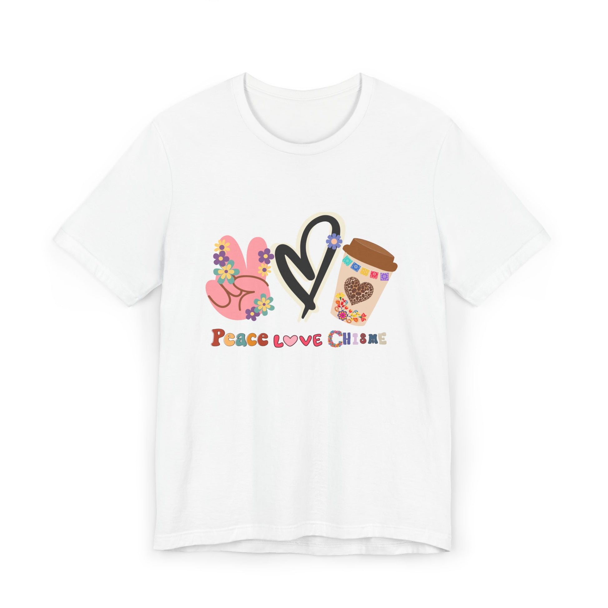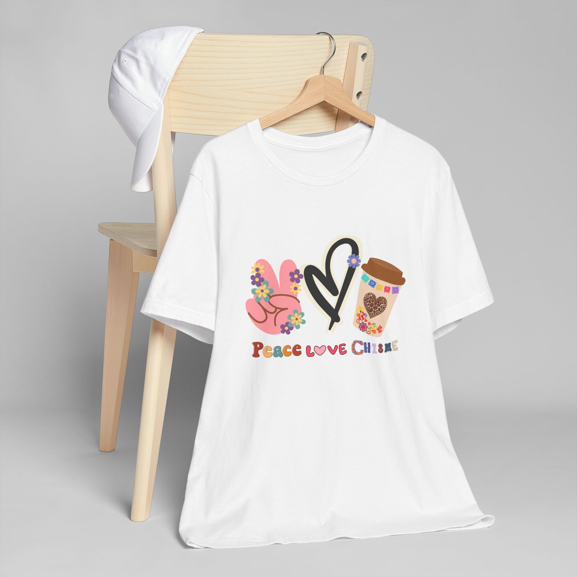 Peace Love Chisme T-Shirt – Fun Coffee Graphic Tee for Everyday Vibes (USA Shipping)