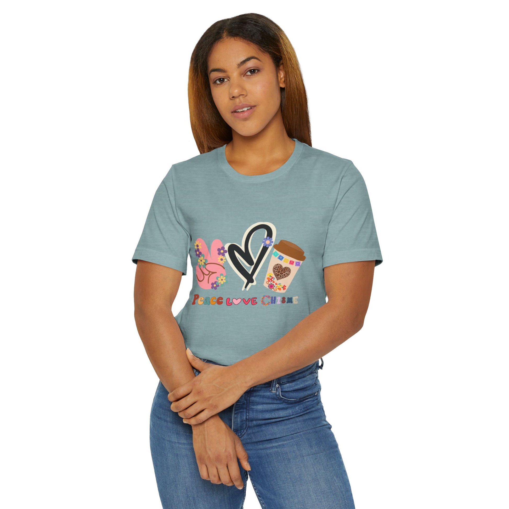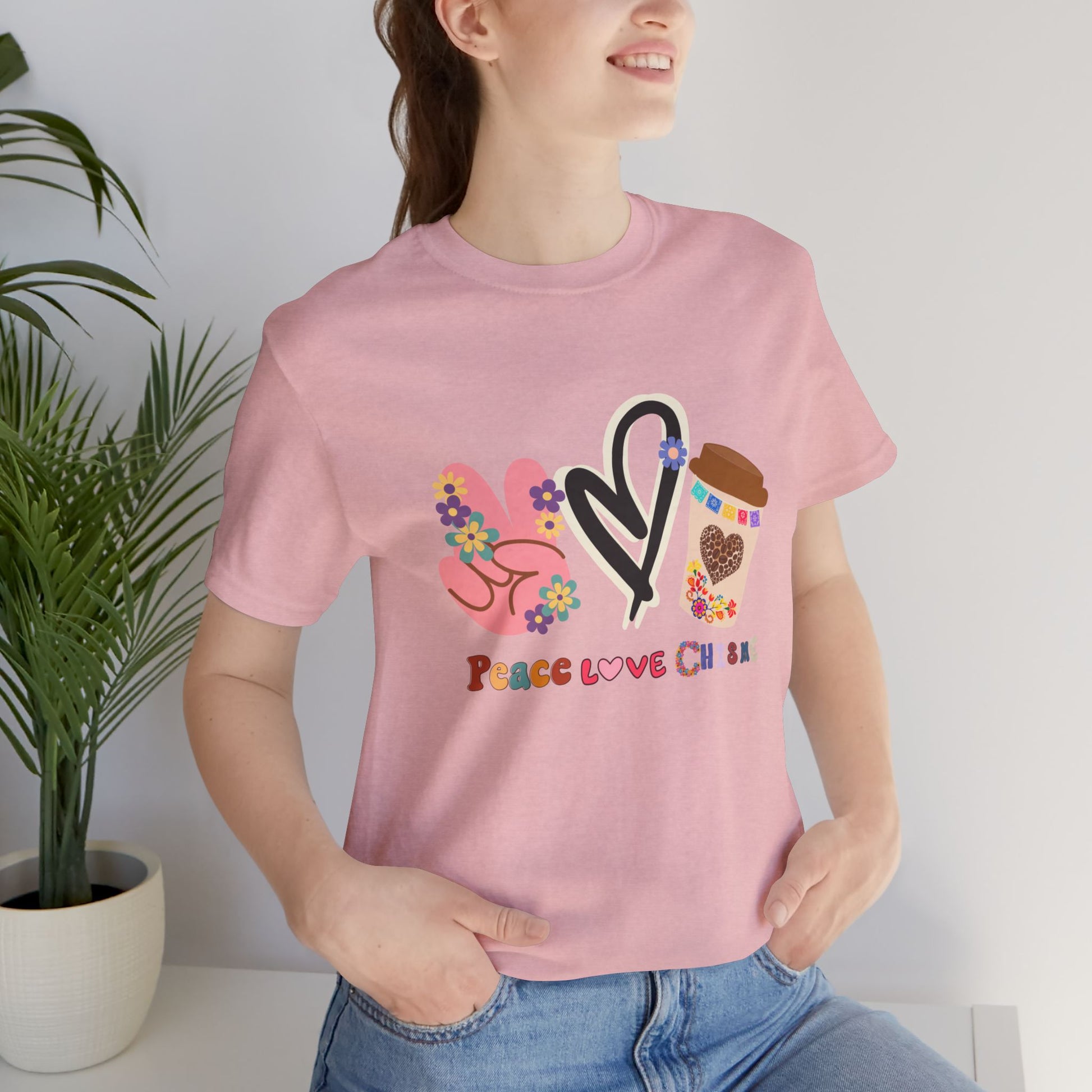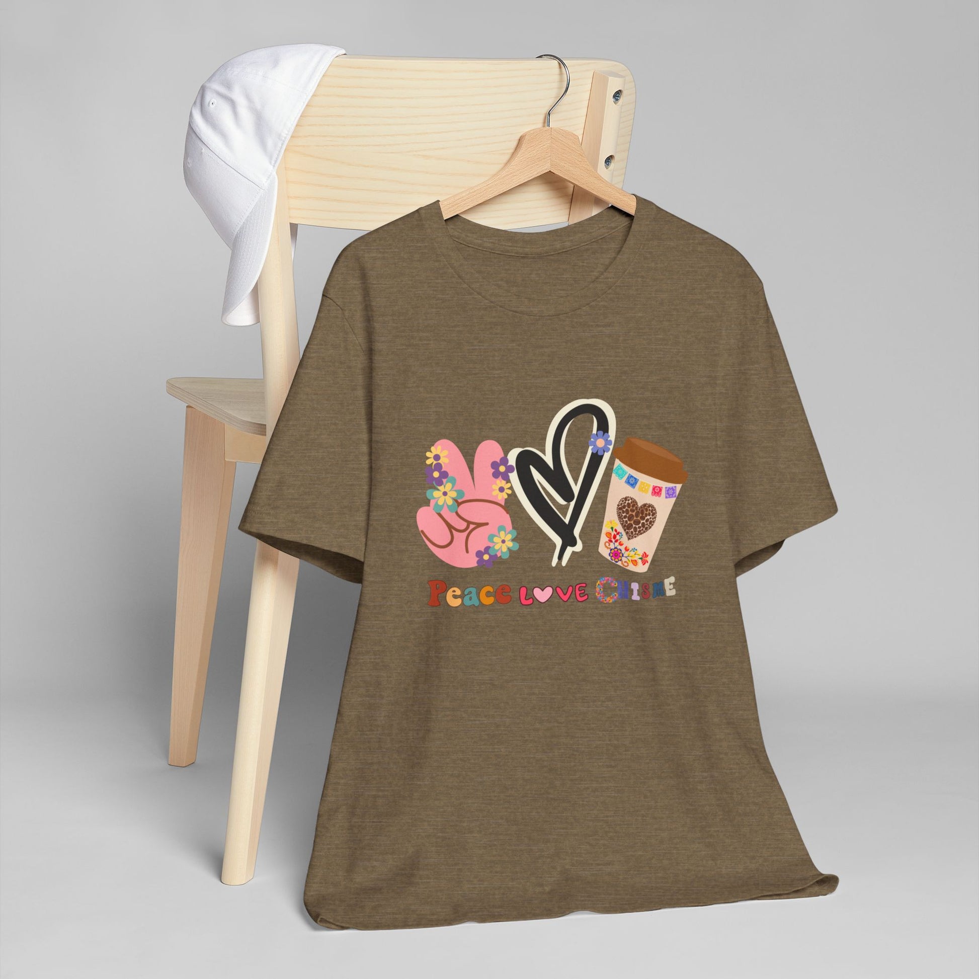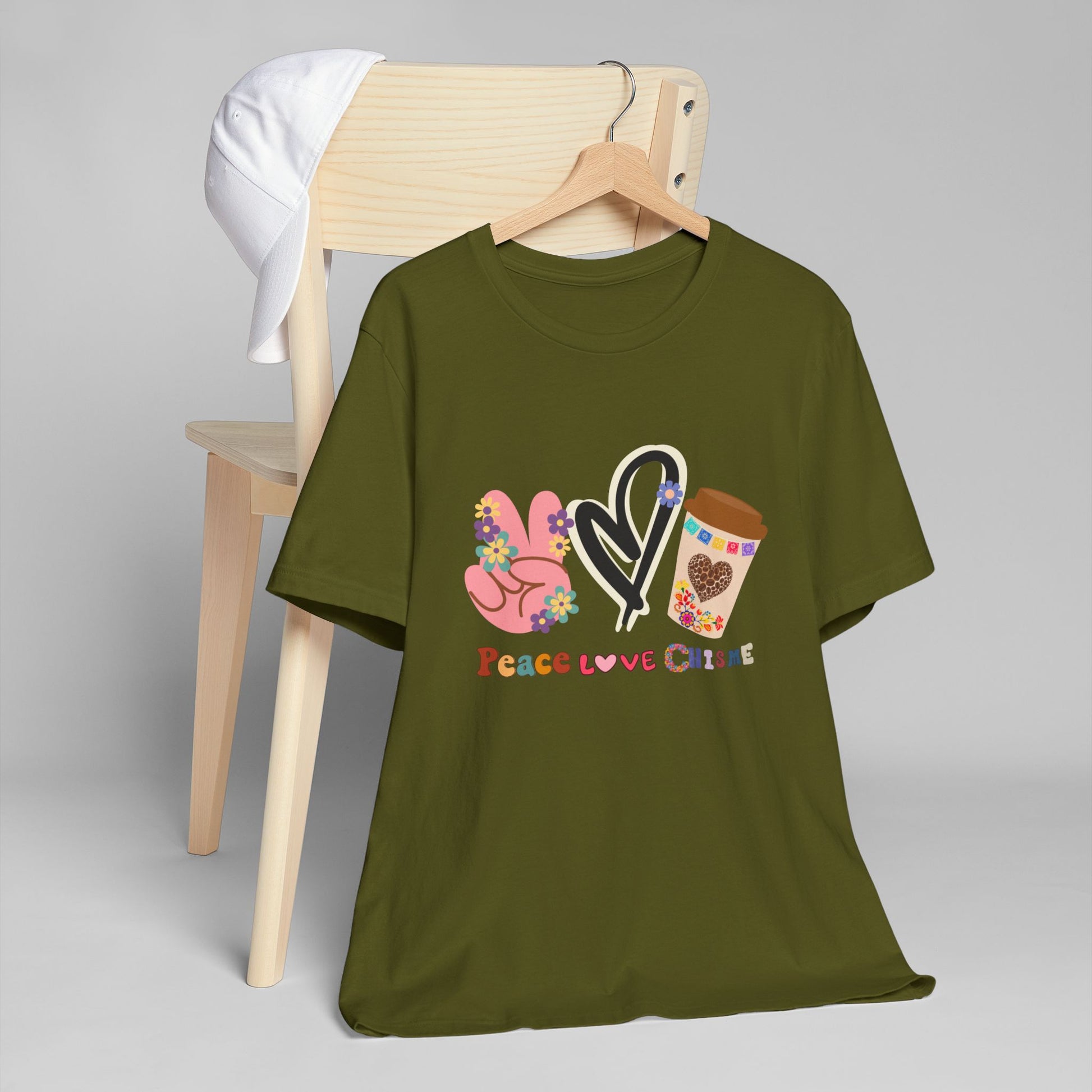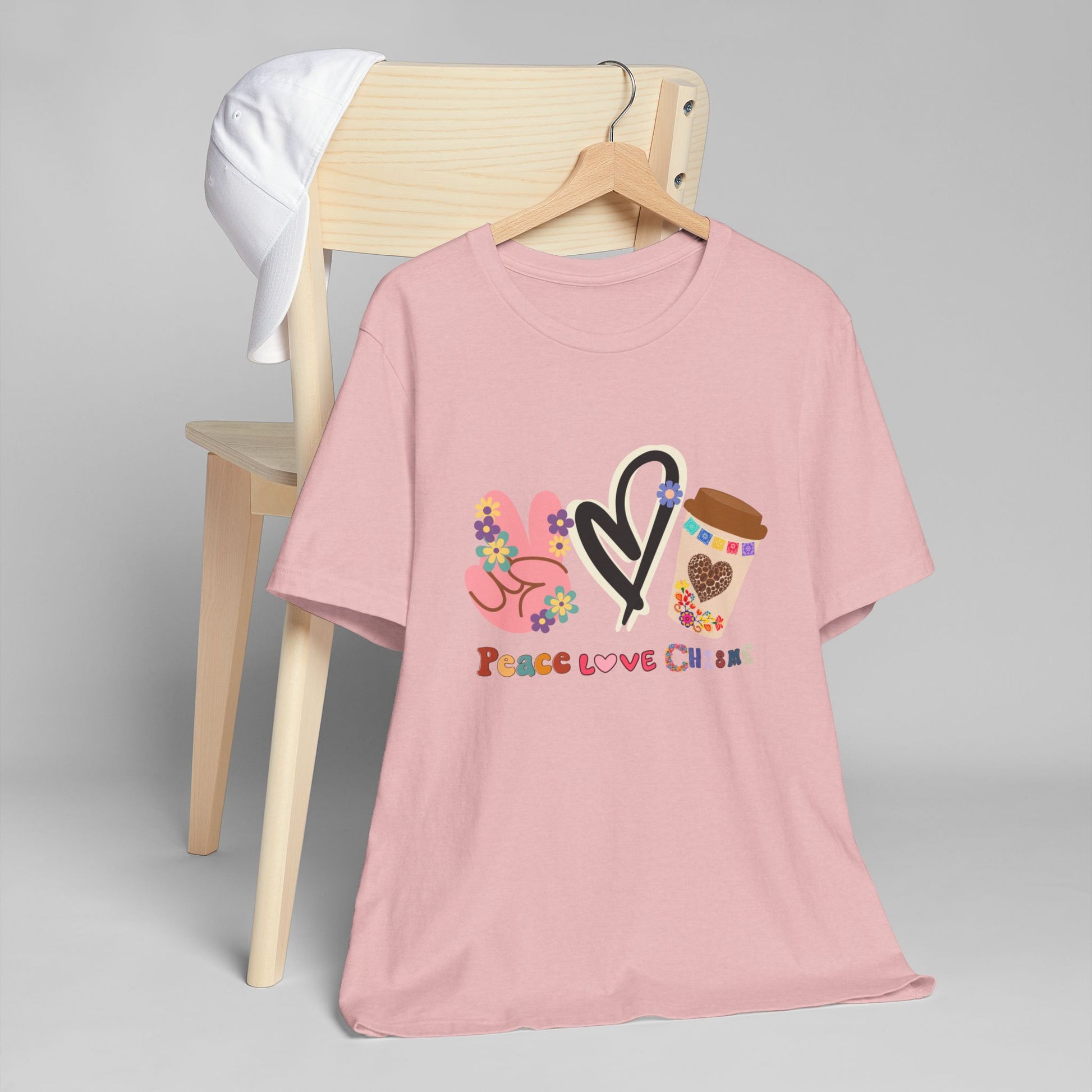 Peace Love Chisme T-Shirt – Fun Coffee Graphic Tee for Everyday Vibes (USA Shipping)