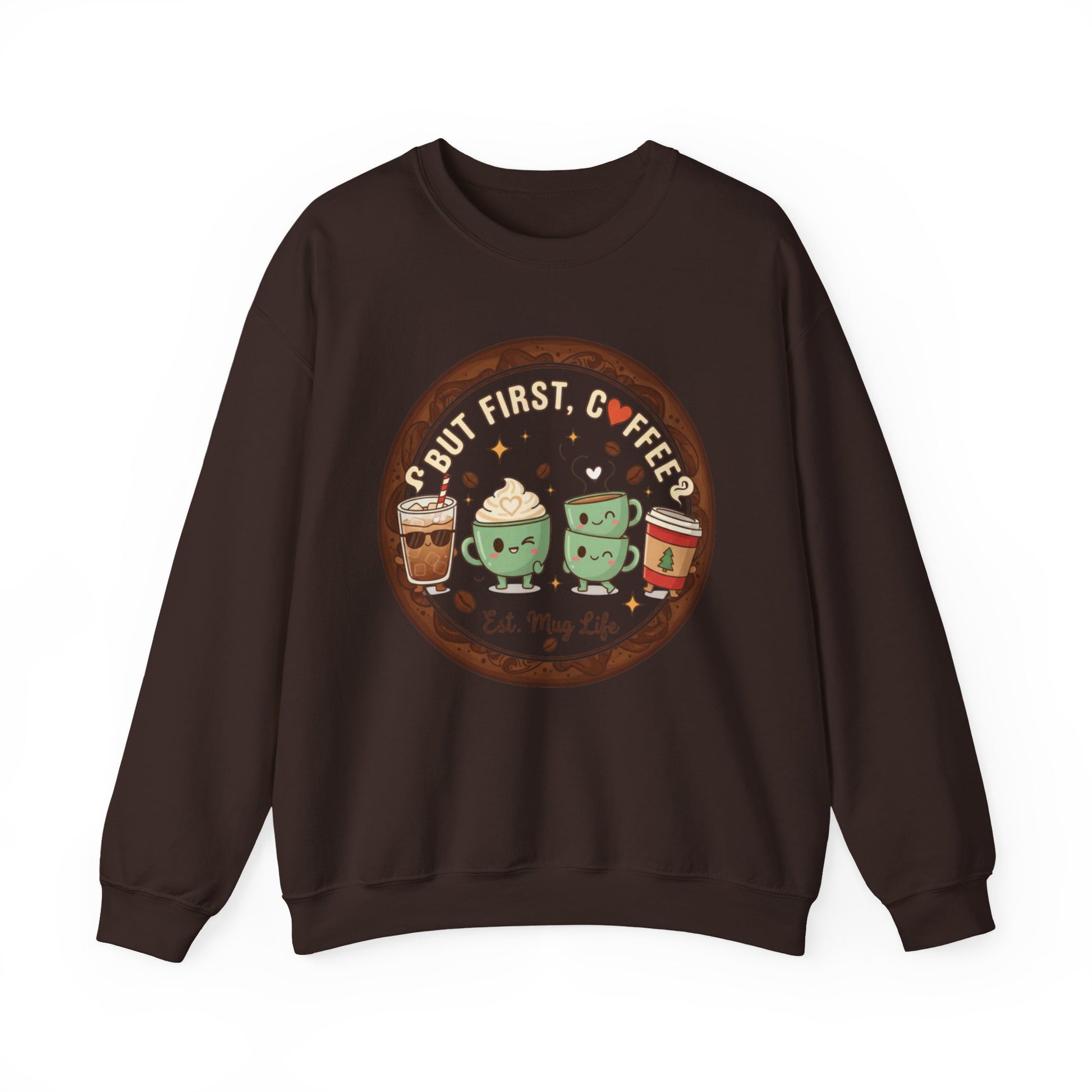 👉 You can buy the But First, Coffee Mug Life Sweatshirt right here with USA-only shipping. -