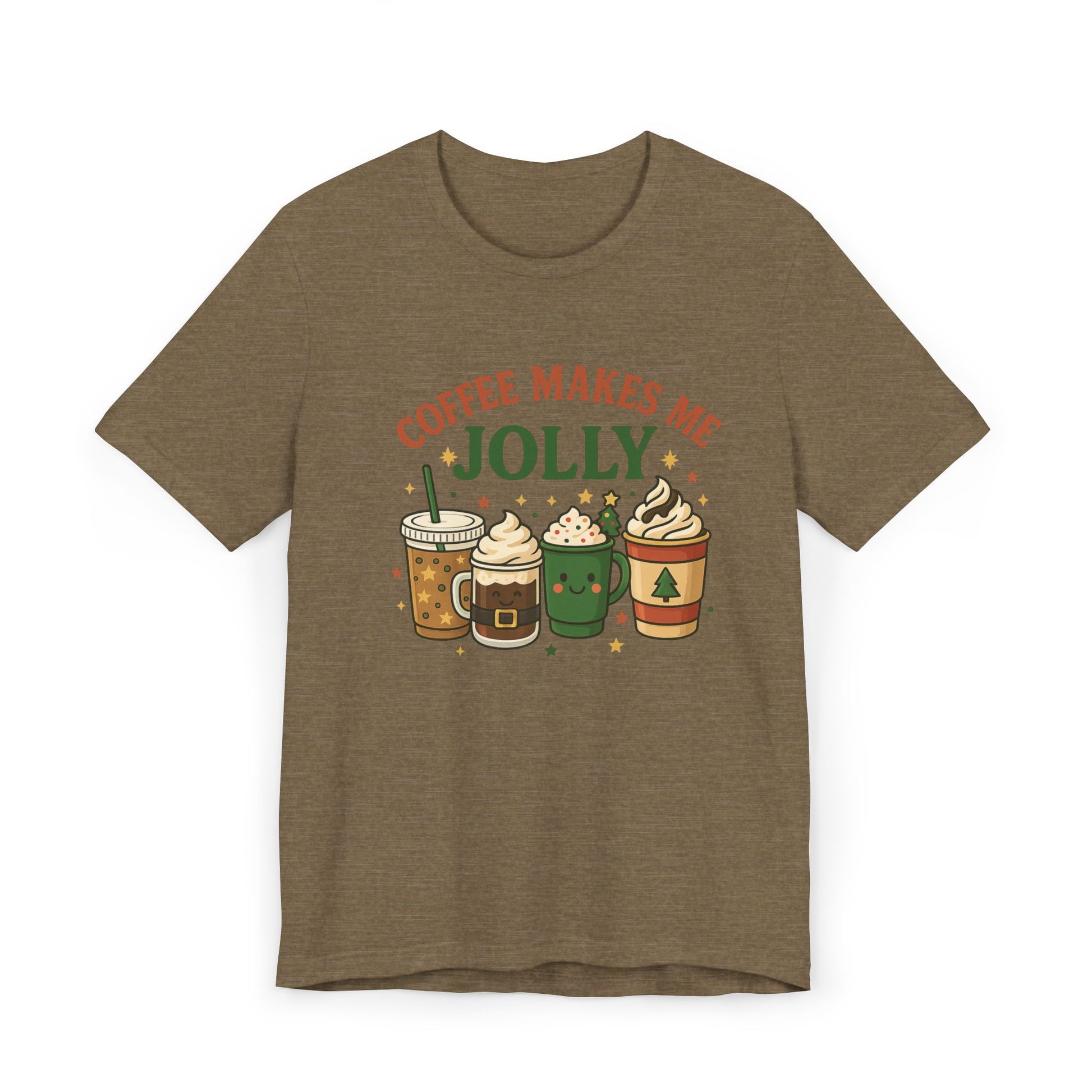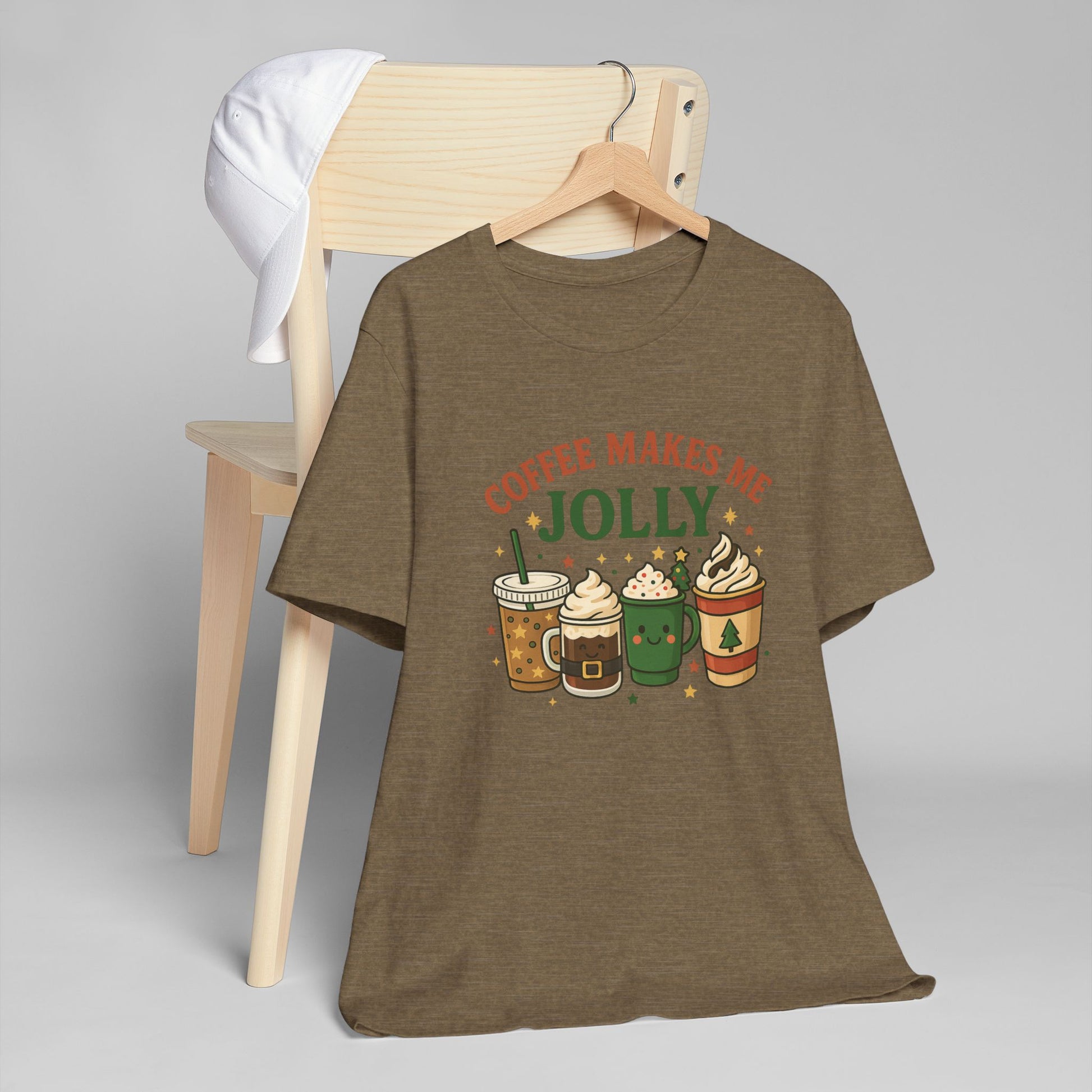 Bring holiday cheer and coffee love together with this festive Coffee Makes Me Jolly T-Shirt. Designed for coffee lovers in the USA, this tee keeps you comfy, stylish, and in the holiday spirit.