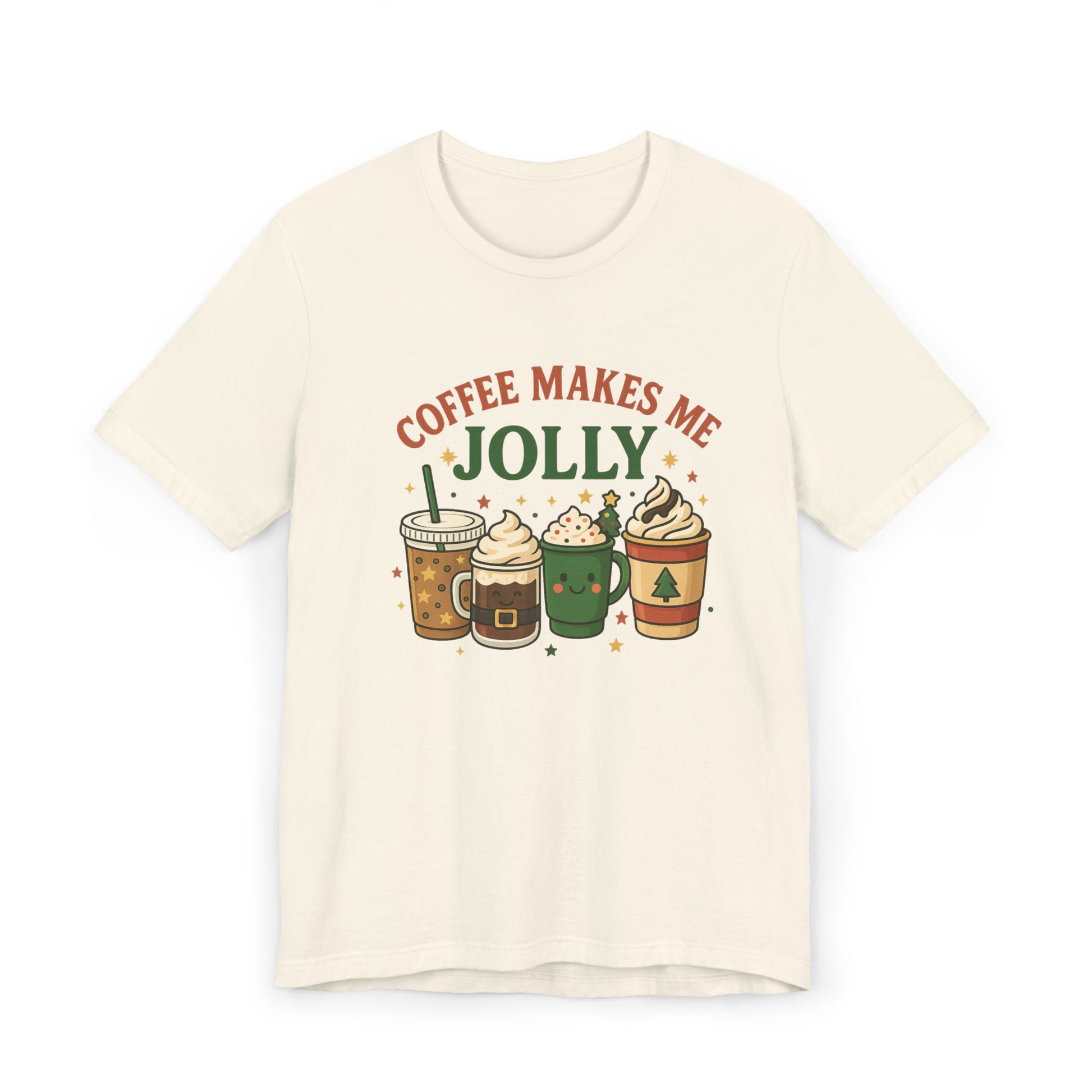 ☕ Coffee Makes Me Jolly Unisex T-Shirt USA | Holiday Coffee Tee