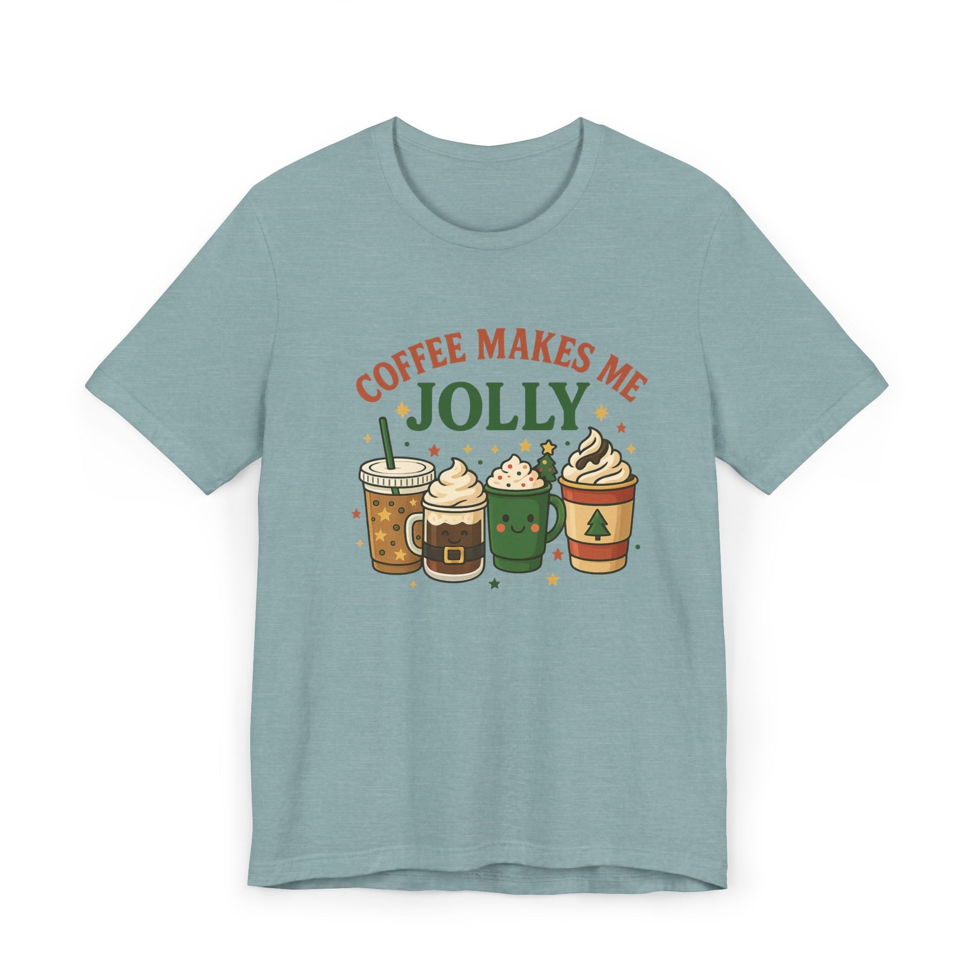 Order your Coffee Makes Me Jolly tee today and spread holiday cheer with every sip and step. Available now with fast USA-only shipping.