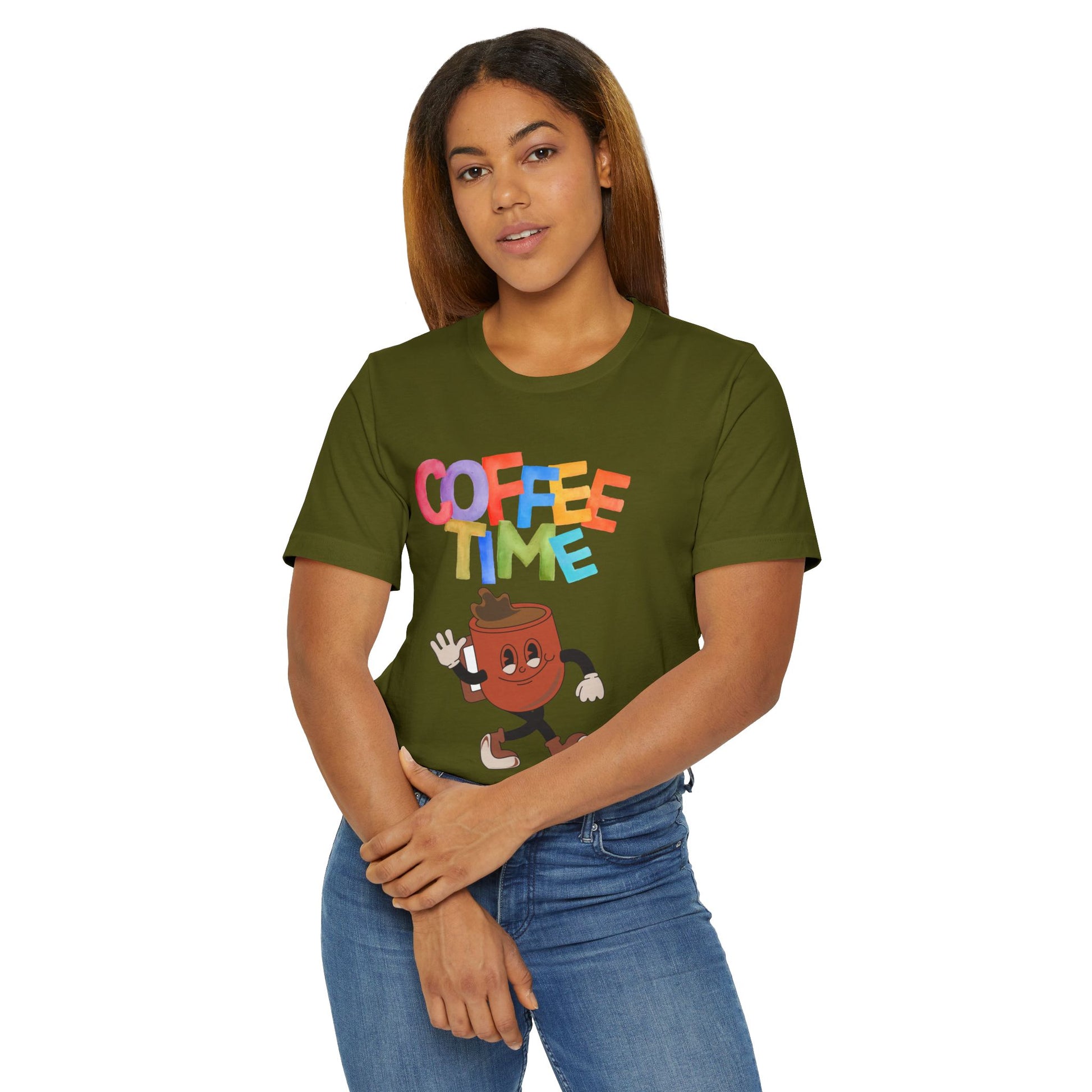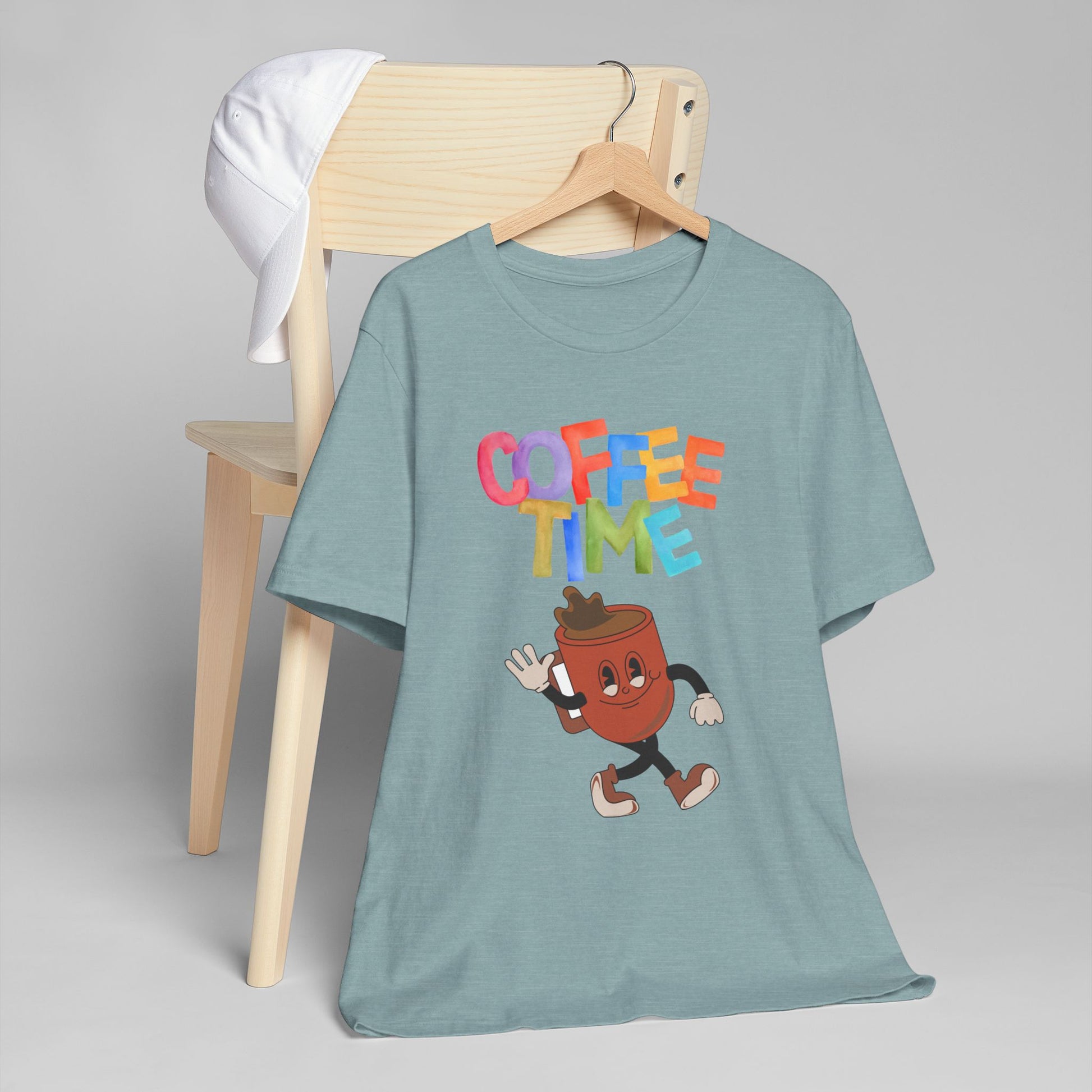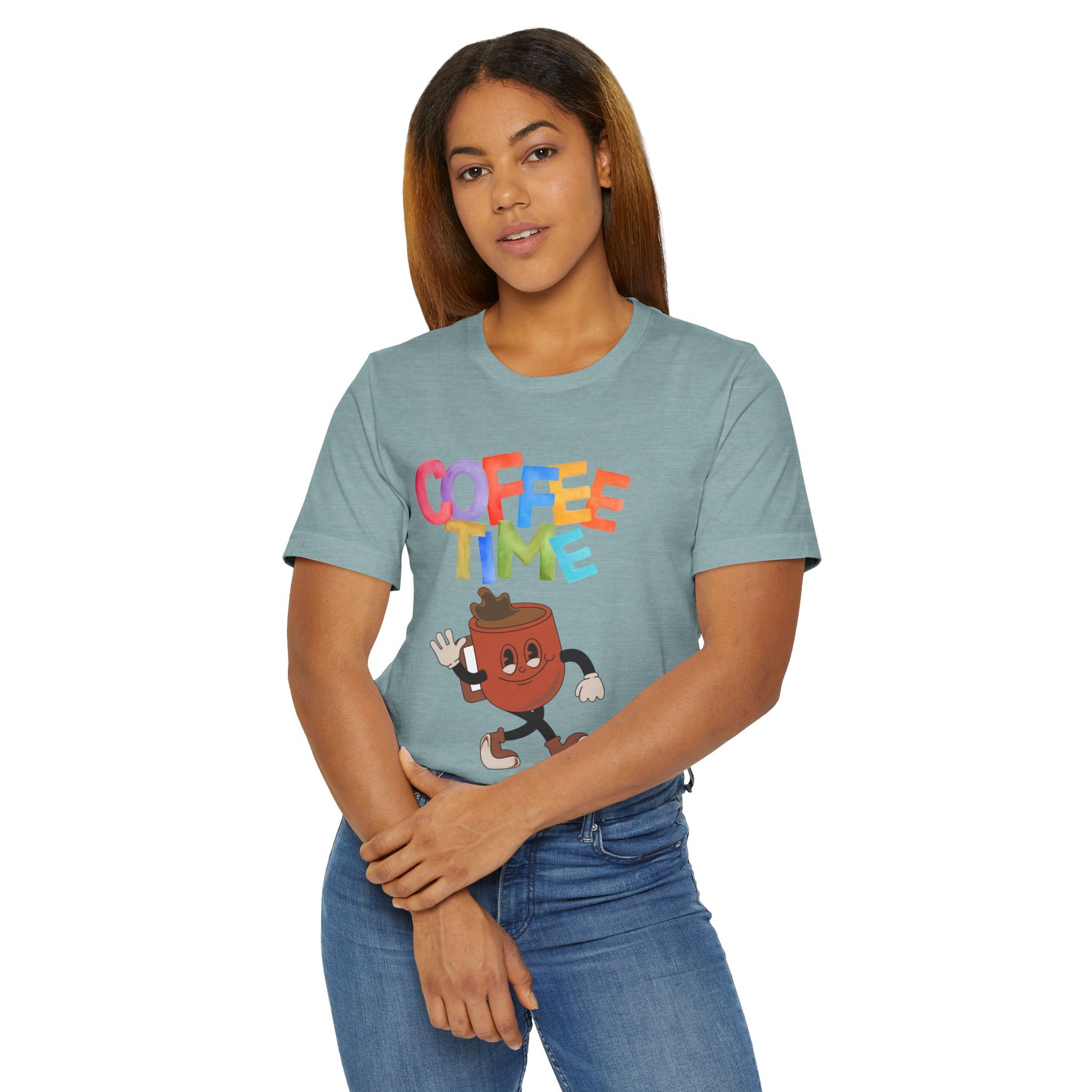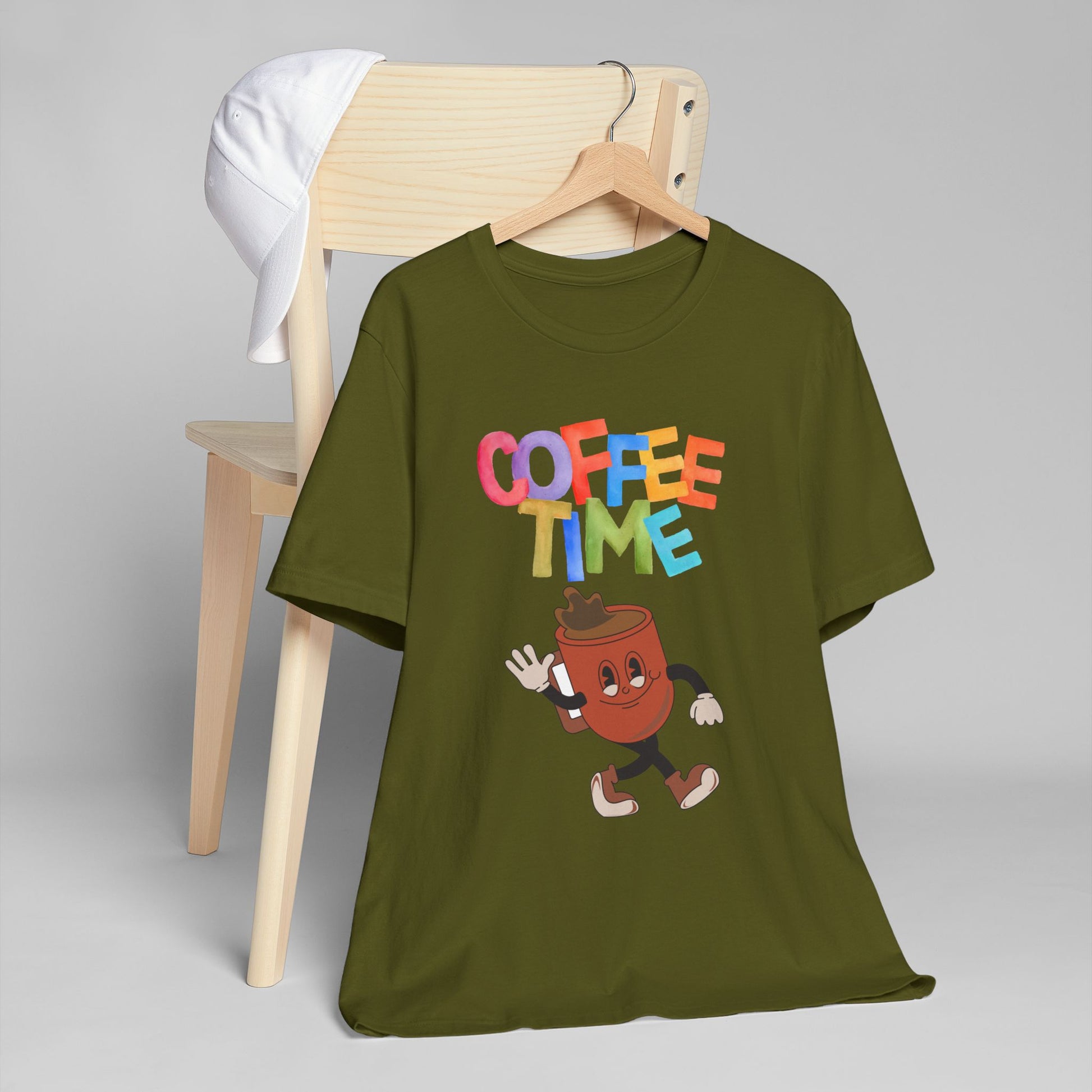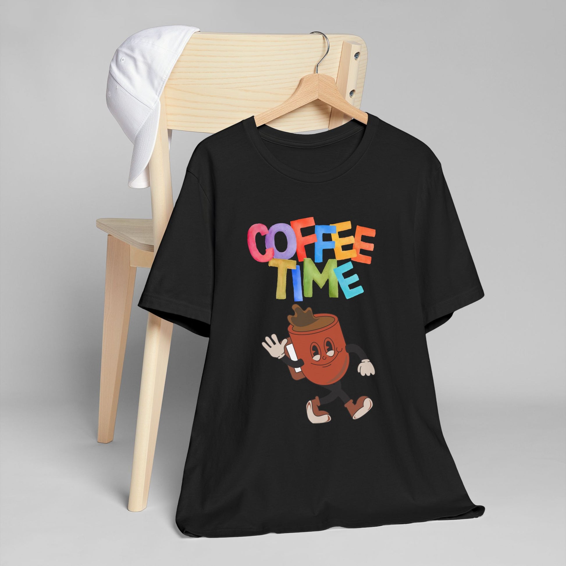 Coffee Time Retro T-Shirt – Fun Cartoon Coffee Cup Graphic Tee for Coffee Lovers (USA Only)
