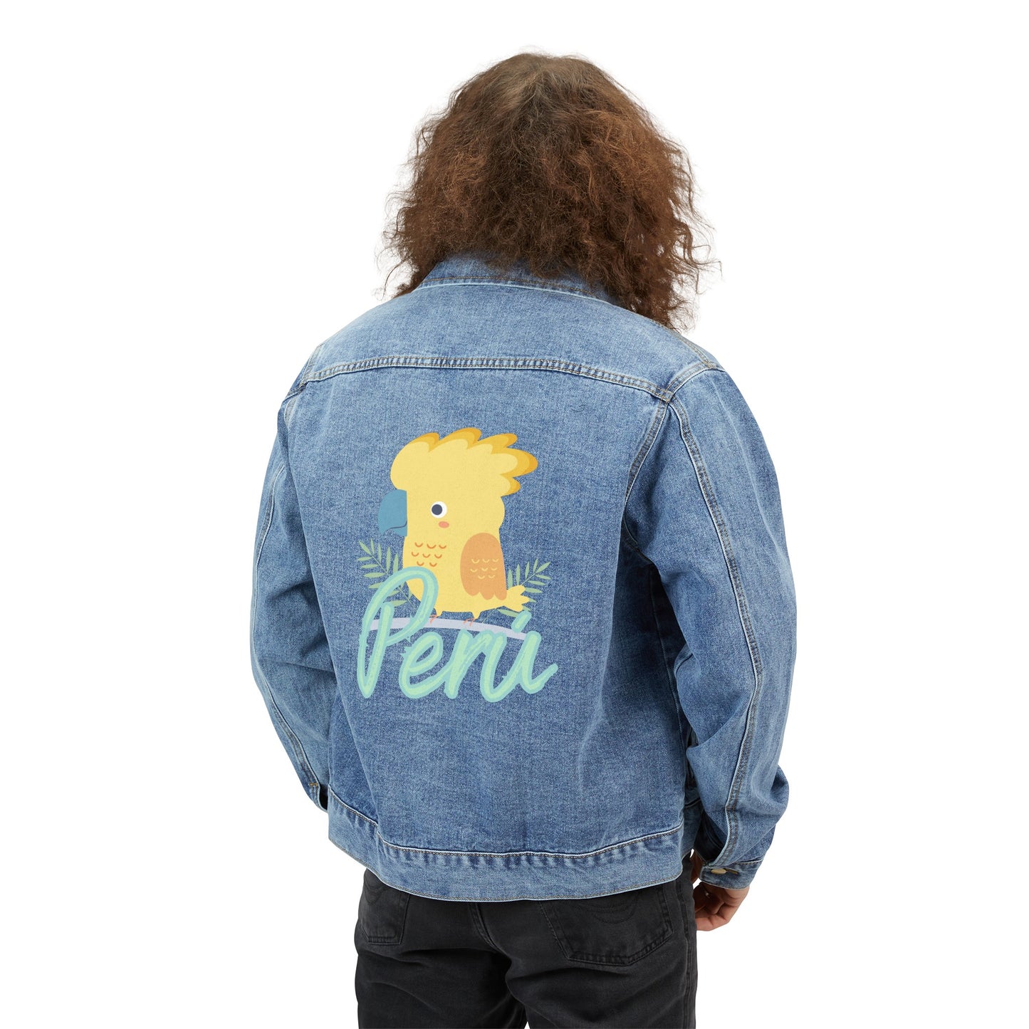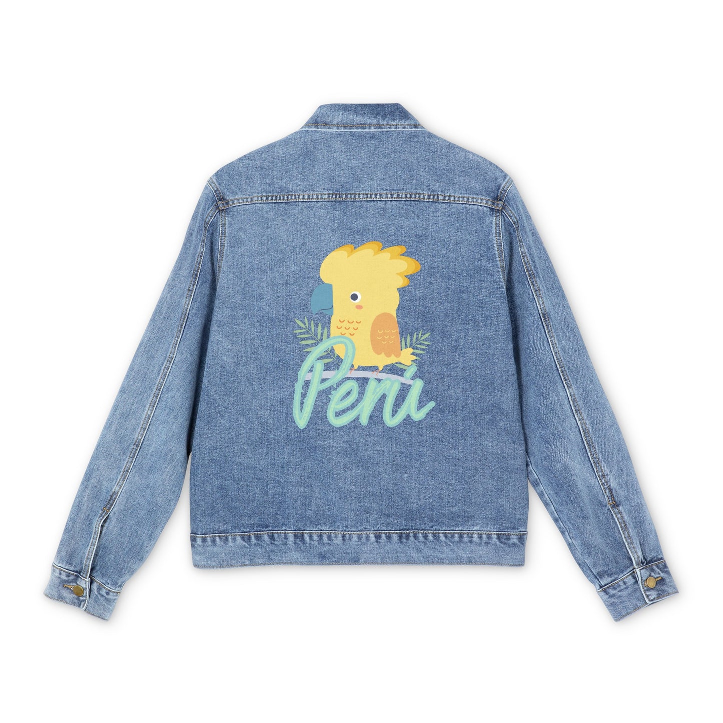 Peruvian Inspired Men's Denim Jacket "Peru Gallito de las Rocas"