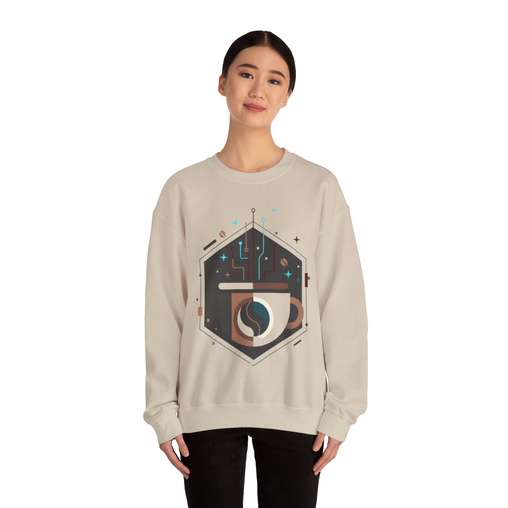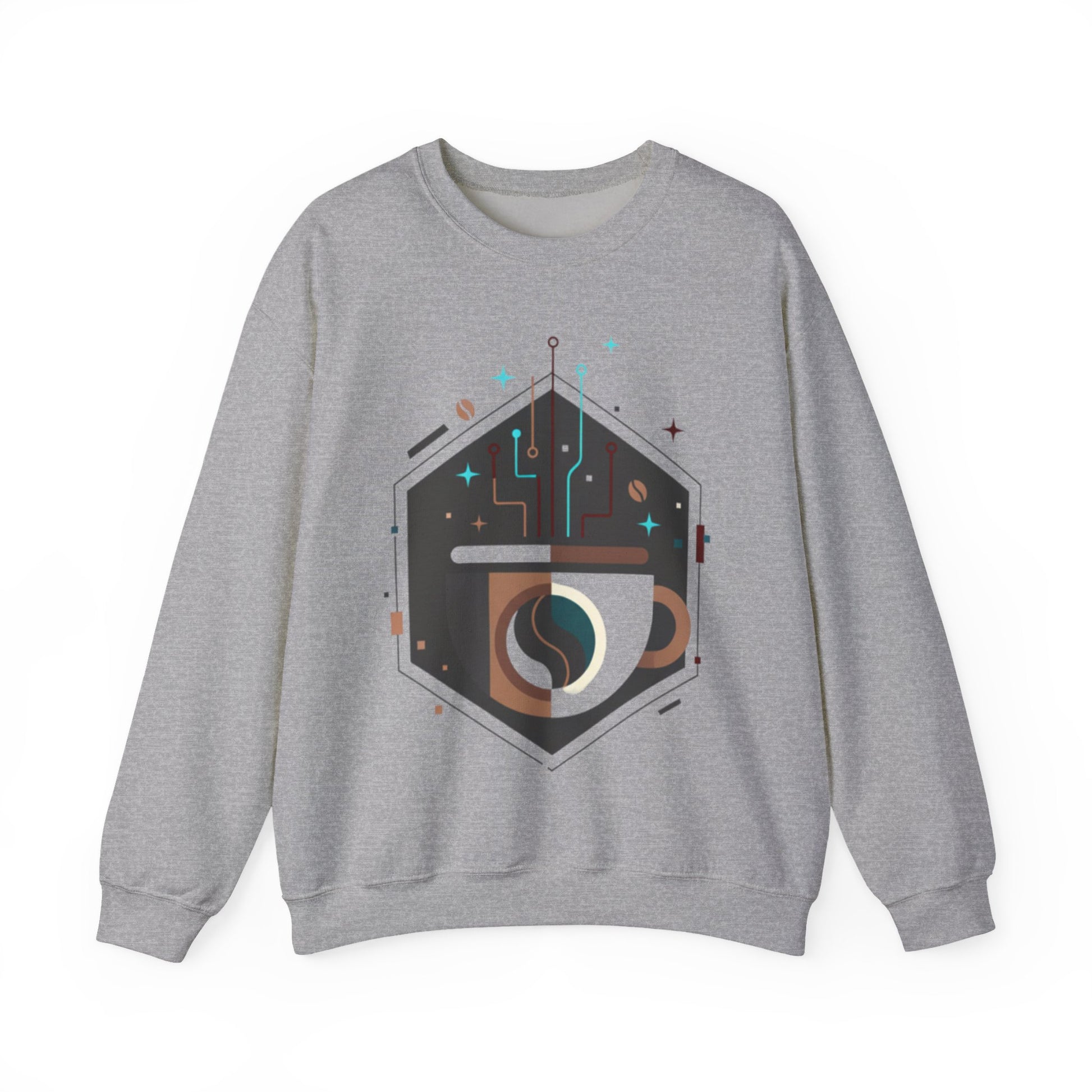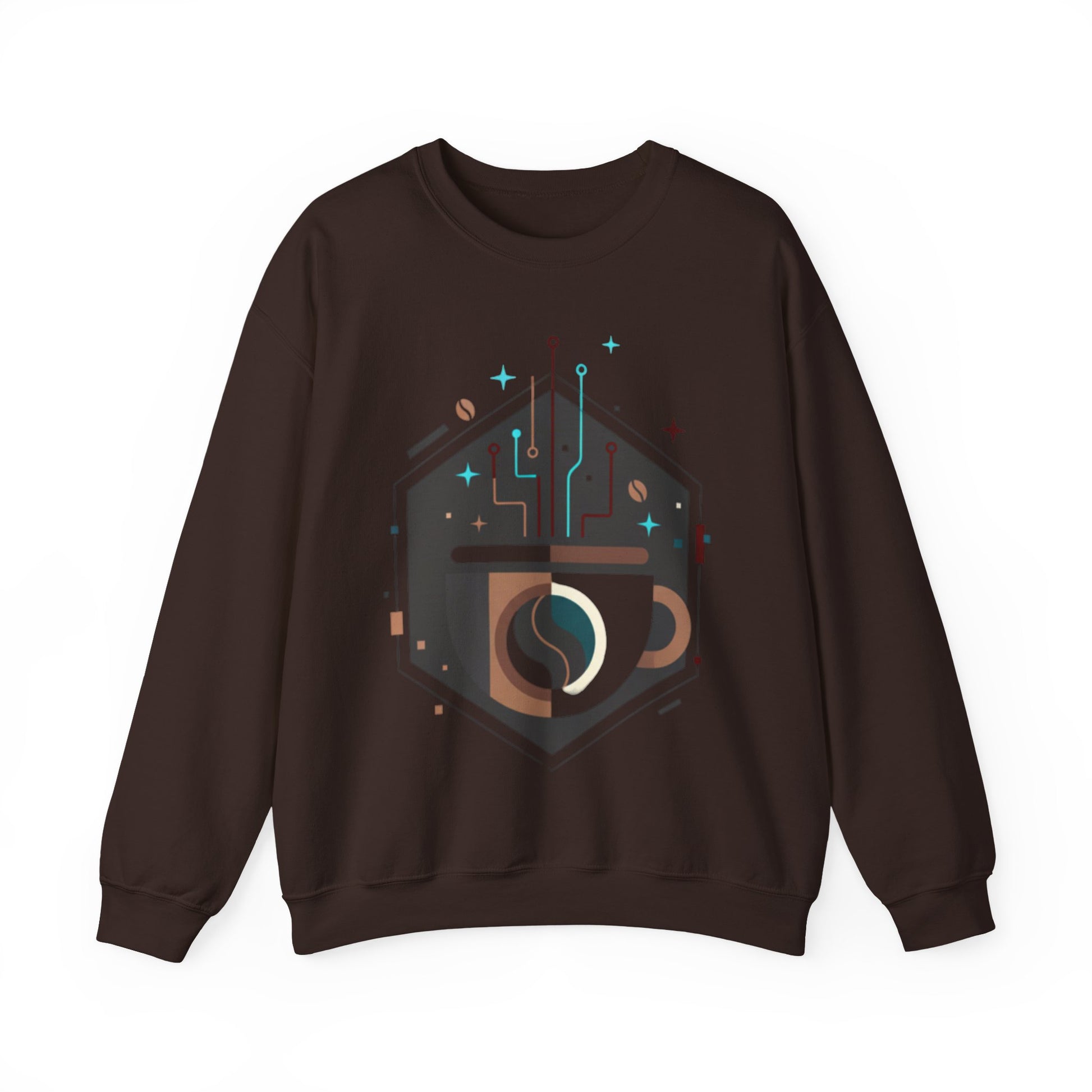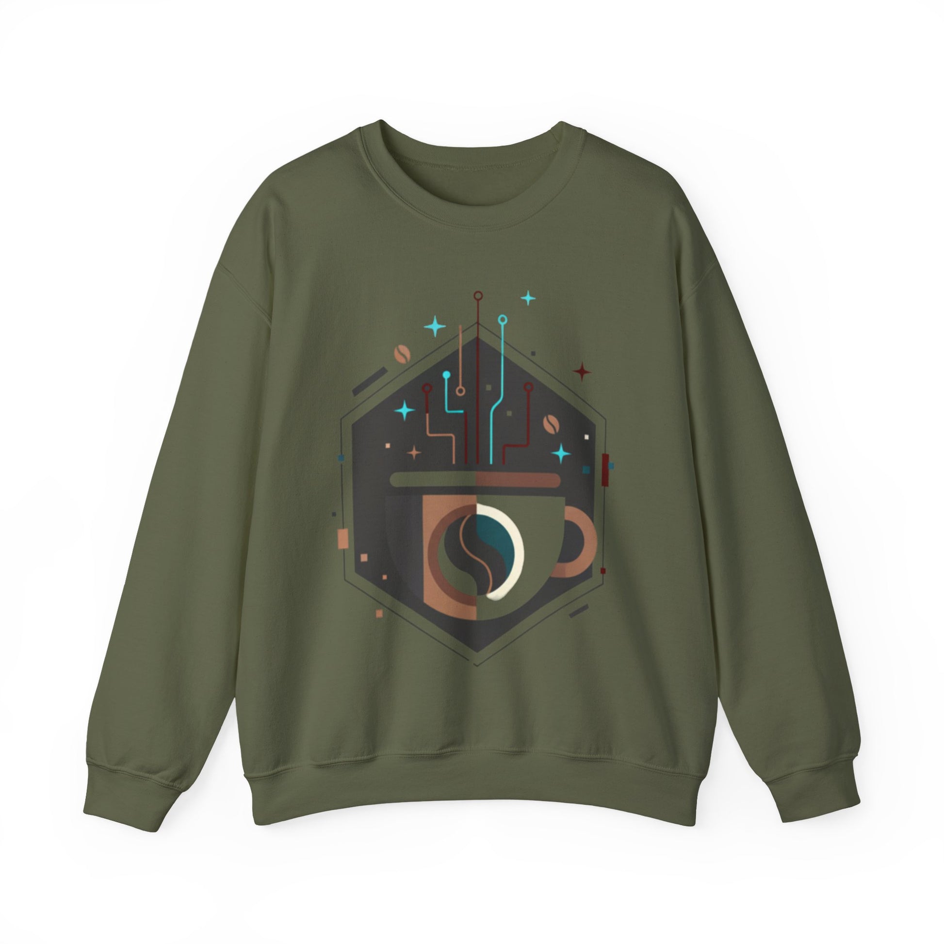 Geek out on coffee and tech with the Tech Coffee Circuit Sweatshirt—a futuristic, eco-friendly crewneck designed for coffee lovers in the USA.